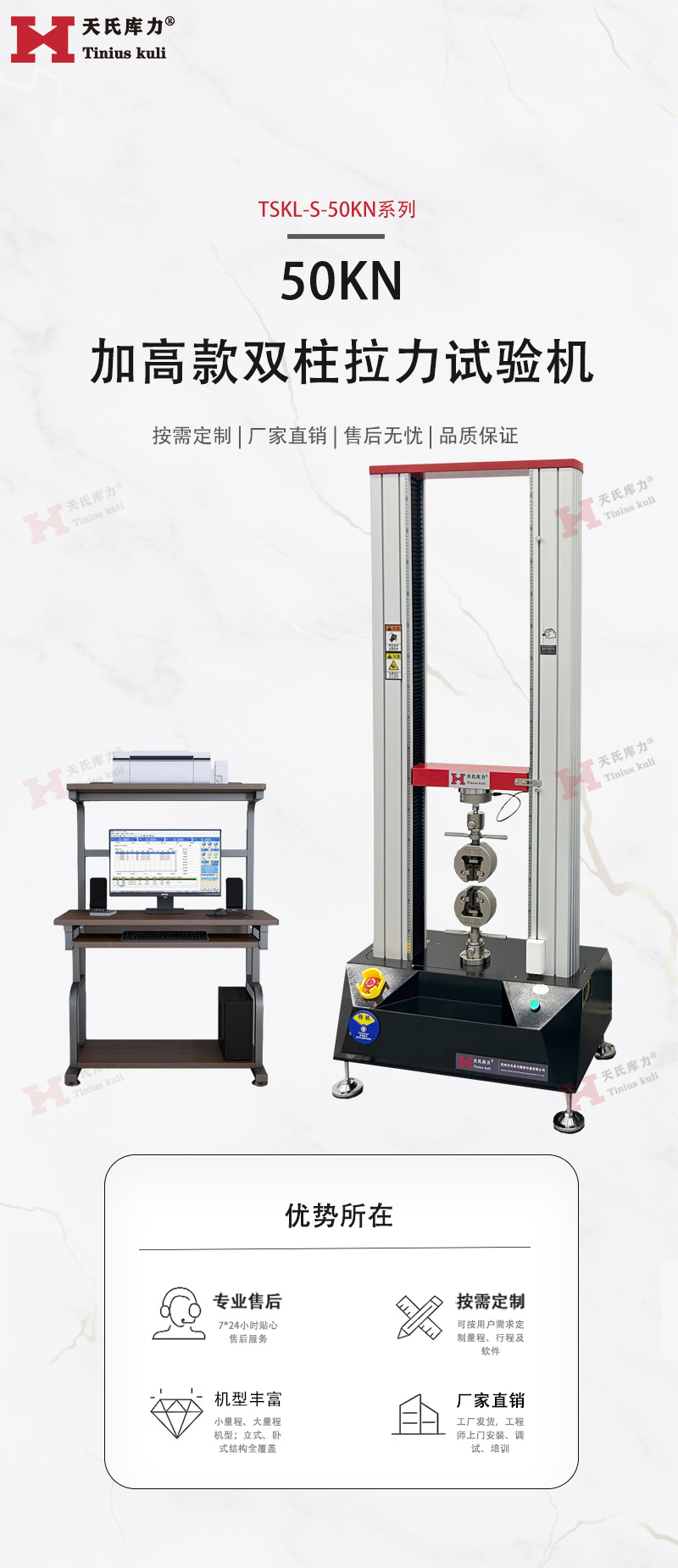 50KN加高款雙柱拉力試驗機,定制電子拉力機