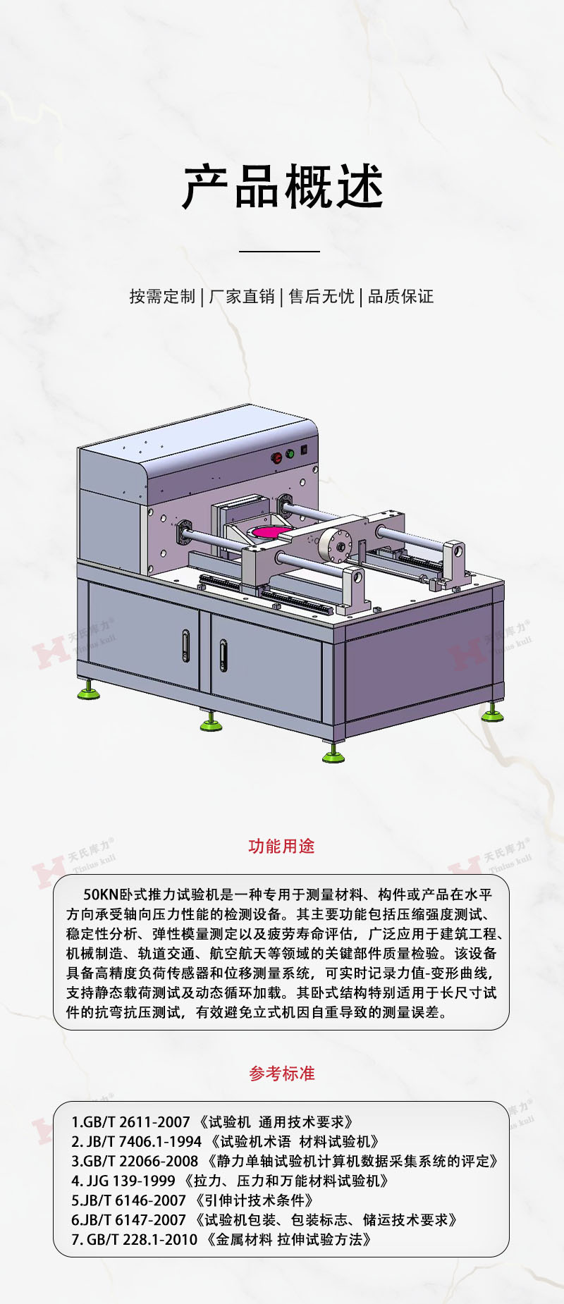 * 表示必填采購:50KN臥式推力試驗機