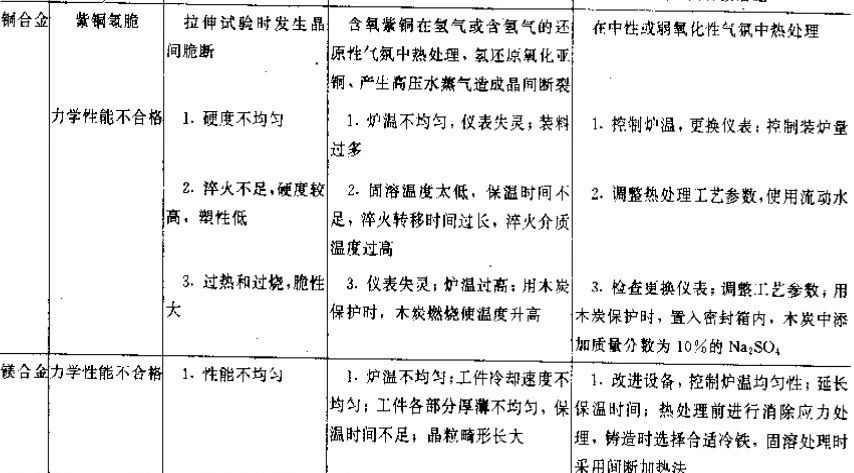 ▼表3 有色金屬熱處理常見力學(xué)性能缺陷及防止方法